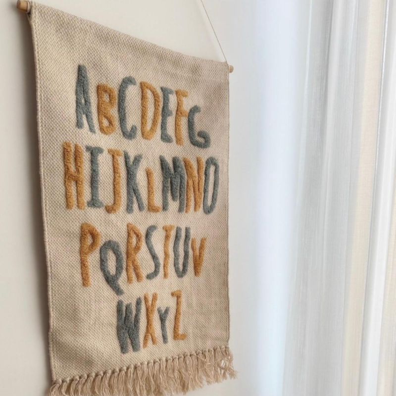 אריג לתלייה ABC כחול חרדל מותאם בגווניו ובצבעים