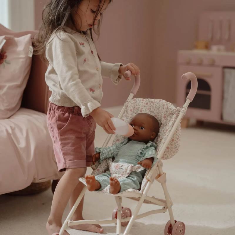 עגלת בובה בעיצוב וינטאג' ועיטור פרחוני של חברת Little Dutch ליטל דאץ’.