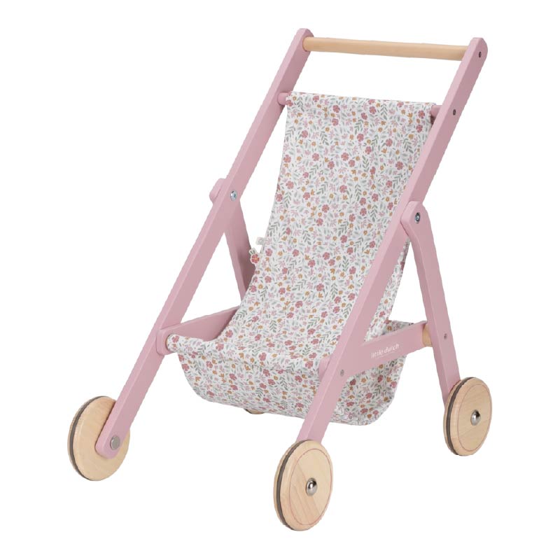 עגלת בובה מעץ, בעיטור פרחוני של חברת Little Dutch ליטל דאץ’.